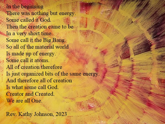 In the beginning There was nothing but energy. Some called it God. Then the creation came to be In a very short time. Some call it the...
